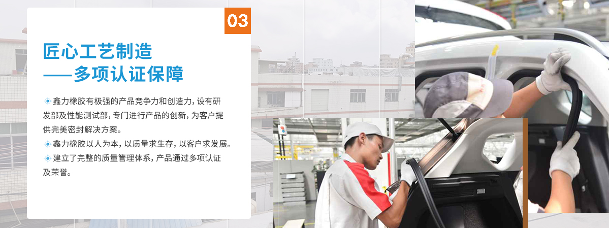 廣州鑫力橡膠制品有限公司專注橡膠工業20年,是一家專業橡膠擠出和熱塑性橡膠擠出行業有主導地位的企業,集設計,研發,生產為一體的生產廠家,專業生產橡膠密封條,發泡密封條, 幕墻膠條,門窗膠條,軌道交通膠條,艙蓋膠條,電器防水條,機柜防水條,我們的產品應用范圍十分廣泛,適用于:汽車領域,軌道交通領域密封條,建筑門窗領域,家具門業領域,航運領域,新能源領域,電器,機柜,機械等行業密封系統產品開發及生產;始終堅持“以人為本、科學辦企”的經營方針,堅守“優質、優價、講誠信”的經營宗旨,秉承“顧客至上、求實創新、精益求精、與時俱進”的企業精神。我們將一如既往,努力開拓新產品及市場,提高品質、完善管理和服務,更好地回饋新老客戶。